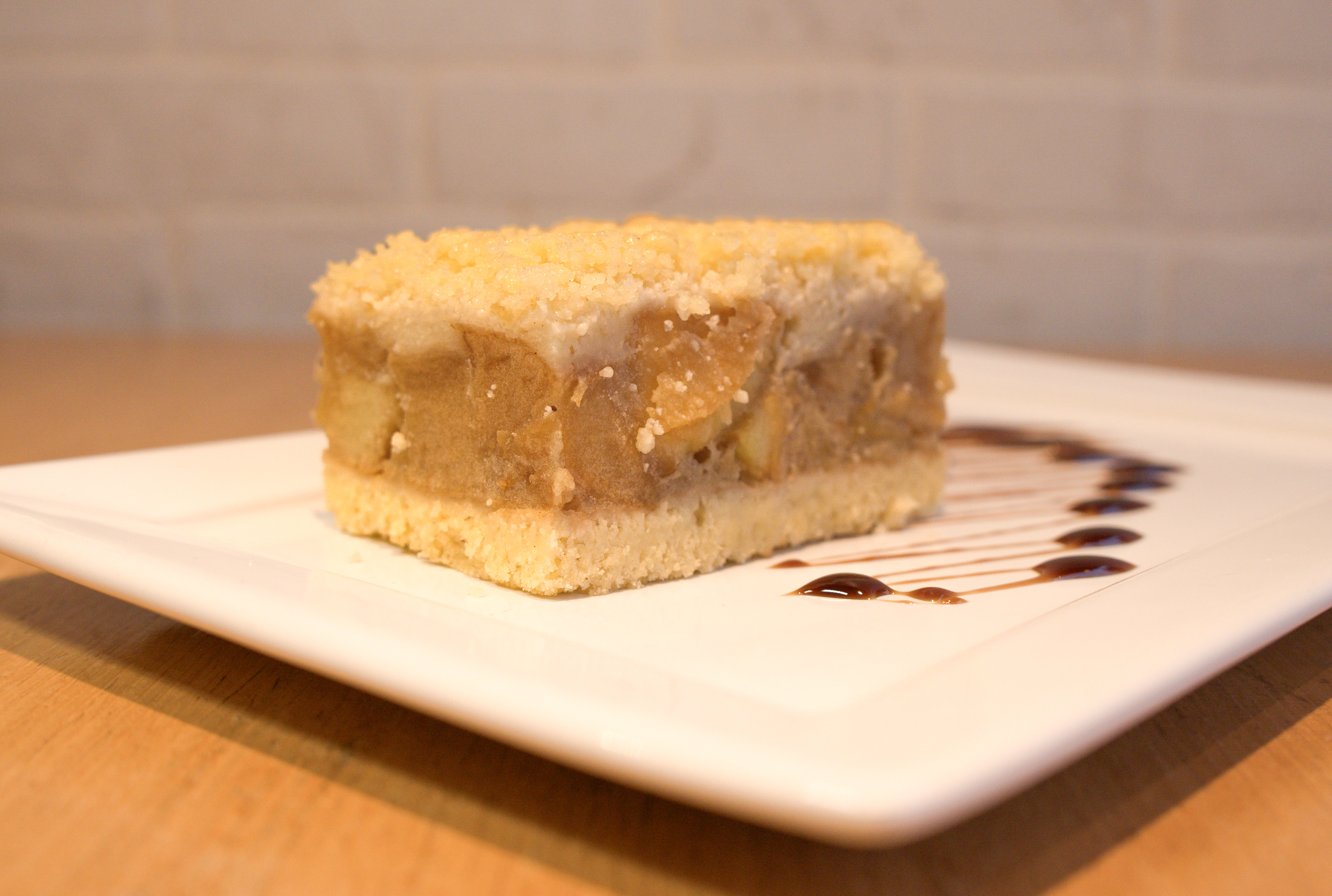 Con queso, cebolla caramelizada y guarnición de mix verdes y calabazas asadas